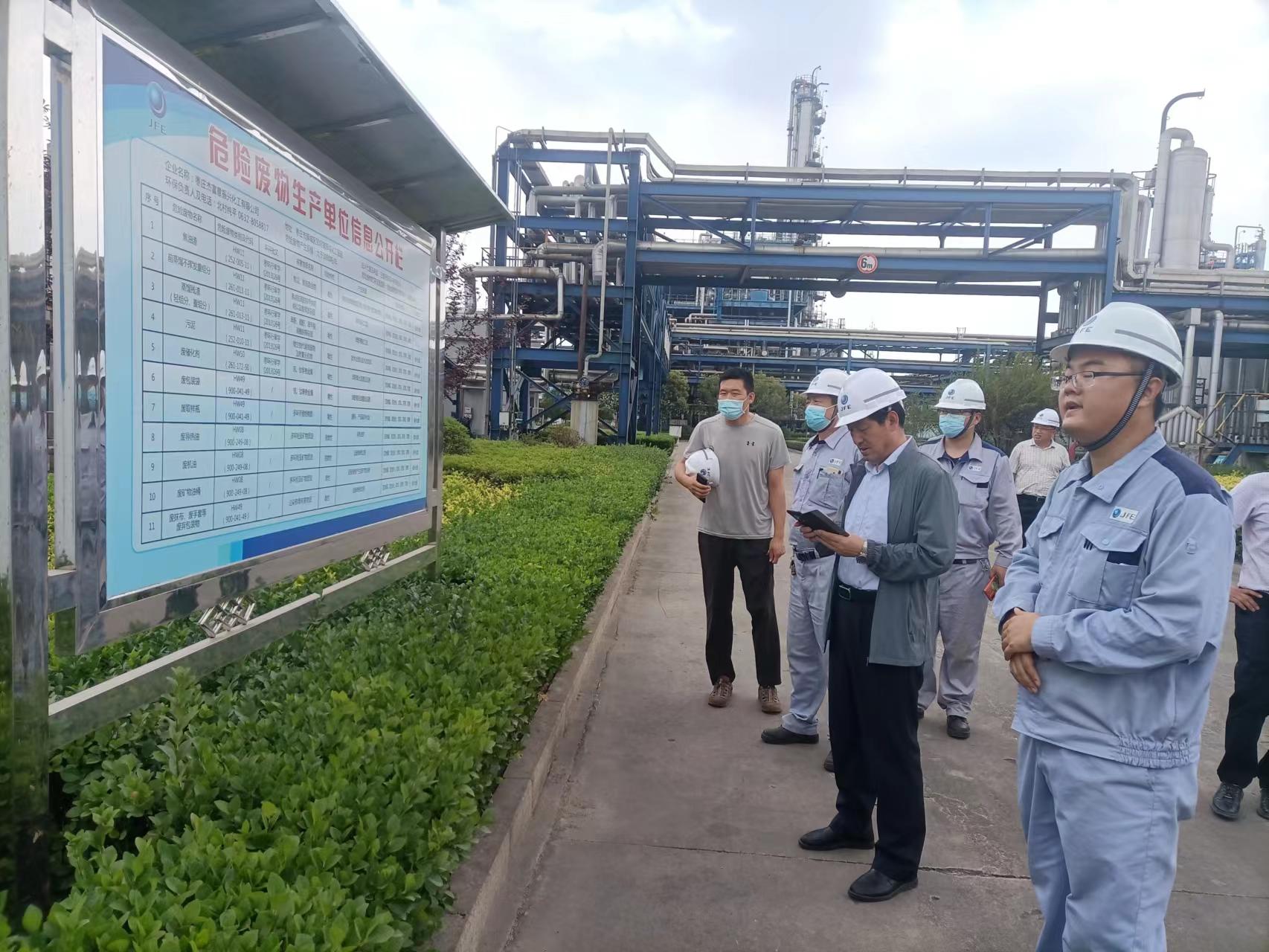 6月22日上午,山東省固廢和?;肺鄯乐?心副主任呂瑞學(xué)帶領(lǐng)省生 態(tài)環(huán)境廳危險(xiǎn)廢物幫扶組一行到棗莊杰富意公司檢查指導(dǎo)危險(xiǎn)廢物管理工作。棗莊市生 態(tài)環(huán)境局固廢土壤科科長(zhǎng)高虎、市生 態(tài)環(huán)境局薛城分局副局長(zhǎng)郭濤,公司安 全總監(jiān)楊建杰等陪同。